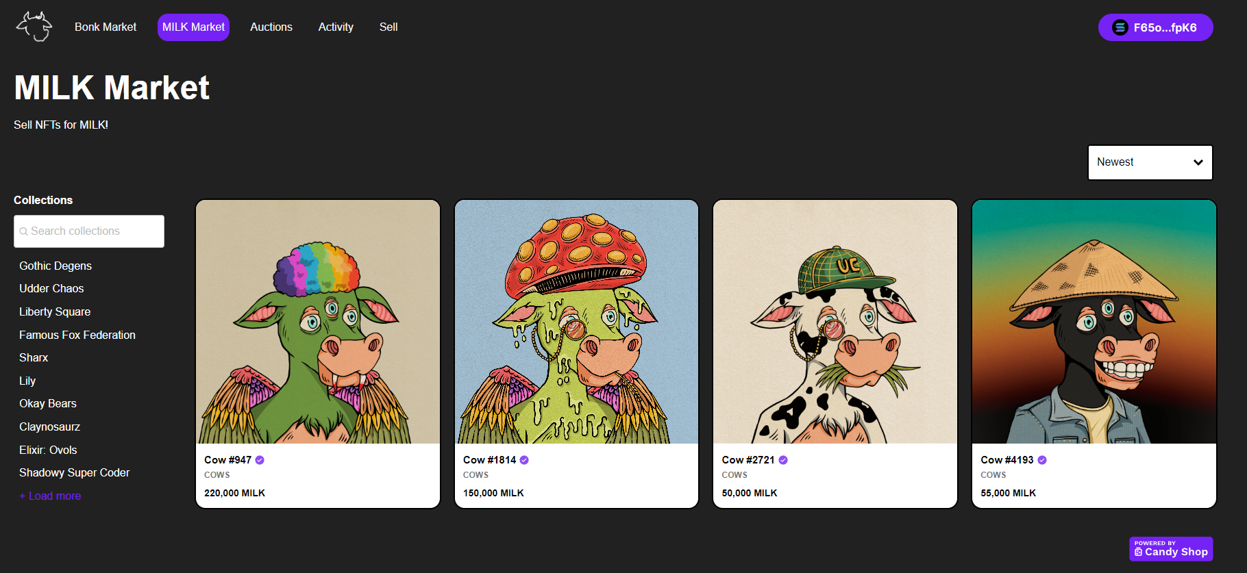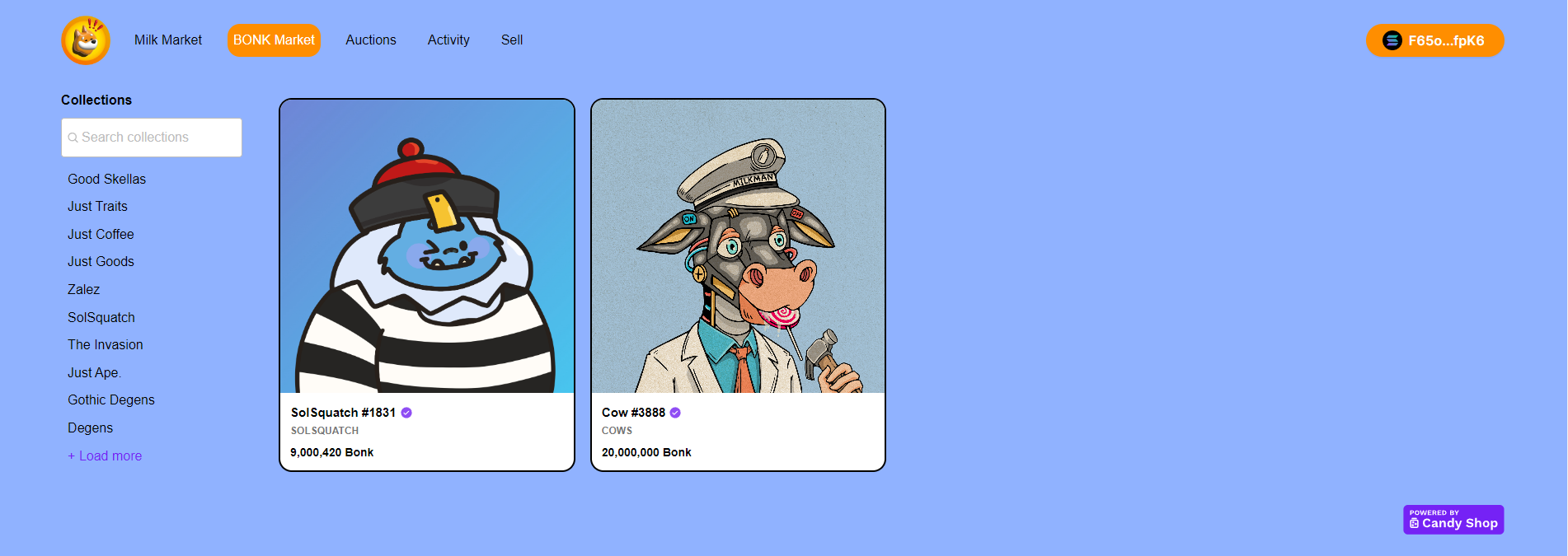 A recent addition to our list of growing utilities is marketplaces. Specifically the new MILK Market and BONK Market. We also have the ability to quickly expand and add another marketplace for any other tokens. Building out marketplaces, even if they aren't in MILK earns our project a % of sales. \